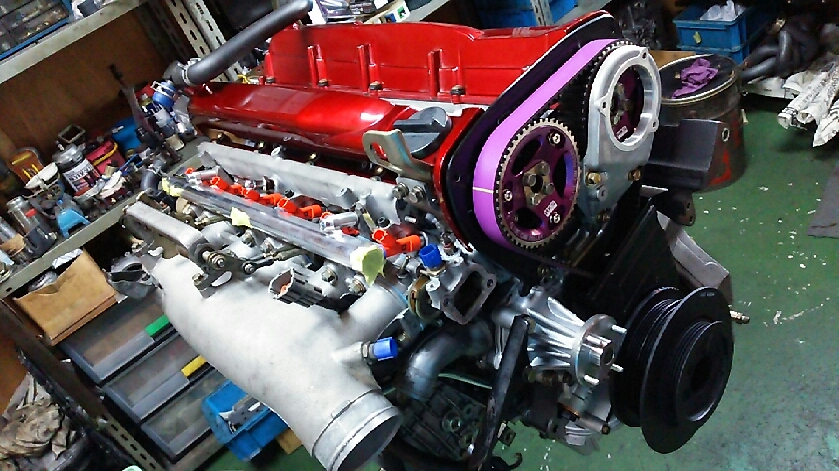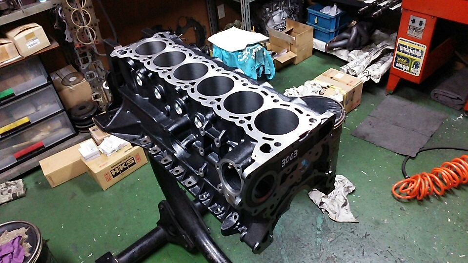 | エンジン室では、次のエンジン製作が始まっております! HKS ステップ2キット ピストン:専用鍛造素材を使用。頭部にNiメッキを施し、耐ノッキング性、トップリングの傾きに対する強度アップを実現。 また、スカート部にはオーベルコートを施し、初期馴染みを含め、焼きつきを防止し、フリクション低減、クリアランスの最適化を図っています。 コンロッド:専用鍛造素材を使用。 強大な爆発加重に耐えられるよう、H断面としています。 また、WPC加工を実施して疲労強度を向上させています。(STEP2専用品) ※純正コンロッドも使用可能です。 クランクシャフト:専用鍛造素材を使用。 また、フルカウンターとすることで回転バランスがよく高回転化が可能です。 ピンジャーナル部や中心部の肉抜きを実施し軽量化することでレスポンスが向上します。 パワーとレスポンスを求めたレース仕様エンジンなどにおすすめです。 想定回転数を9000rpmとし、GT-RSツイン、TO04、T51RKAIなどとの組み合わせにおすすめです。 | |