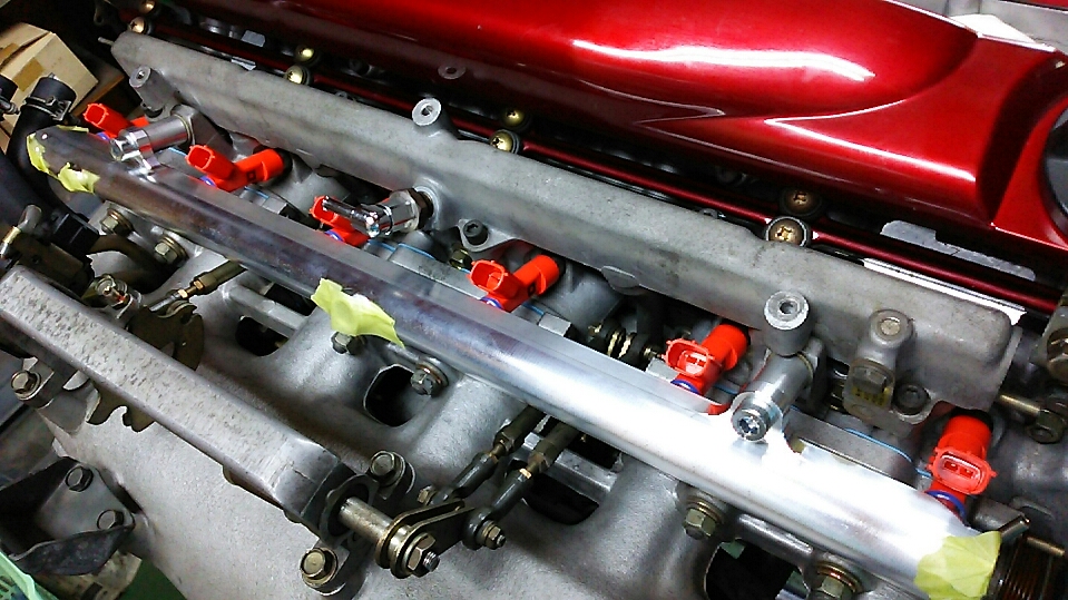 | 何本作ったんだっけ? たぶん20本? 今は作ってません! ガレージ伊藤オリジナル・大容量フューエルデリバリーパイプは、 大容量インジェクターを取り付けた際でもガソリンを確実に送り込む パイプ容積や、パーコレーションを防ぐ高い放熱性、ポンプ圧送脈動の 低下など、チューニングエンジンに必要不可欠な性能を確保したデリバ リーパイプです。 車種:スカイライン GTーR 型式:BNR32/BCNR33/BNR34 エンジン:RB26DETT 商品:RB26大容量フュエールデリバリーパイプ INJ取付部寸法 11o 本体のパイプ径 18o(内径) カラー・ニップル付 ※インジェクターは含まれません。 | |