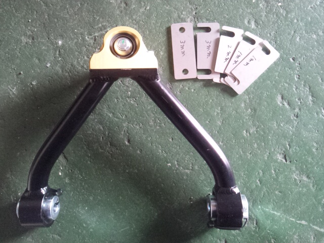 | トップシークレット社製(R35 GT-R用スーパーアッパーアーム) 構造変更申請書類付きですので、取り付けても車検は問題なく適合致します。 サーキット走行には欠かせないアライメント調整。 アライメントの数値で、タイムはもちろん、普段乗りから操縦性も安定感も大幅に変わります。 スーパーアッパーアームは、フロントのアライメントでも、コーナリングの要となるキャンバー角を30分〜2度まで、変更できるため走行コースに合わせて適切なアライメントへと変更できます。 価格:120,000円(税別)+工賃 ●アップライト取り付け側に付属の板を入れることで、キャンバー角が30分〜2度まで細かく調整が可能です。 ●付属の板の組み合わせて厚みを変えることで、キャンバー角が変更できます。 ●ボディ側もアップライト側も、信頼性のあるピロボールを使用しています. 耐久性も35GT-Rで多くのステージでテスト済みです。 | |