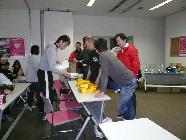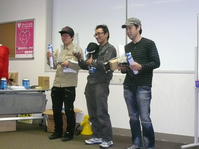 | FAN☆RUN走行会 恒例のじゃんけん大会! 表彰終了後には、恒例のじゃんけん大会の前に 参加者・同伴者皆さんに参加商品を! 皆さんに配布が終わると恒例の じゃんけん大会を開催! 皆さん、遅くまで本当にご苦労様でした。 関係者の皆さま、協賛いただいた各メーカー様 有難う御座いました。 | |