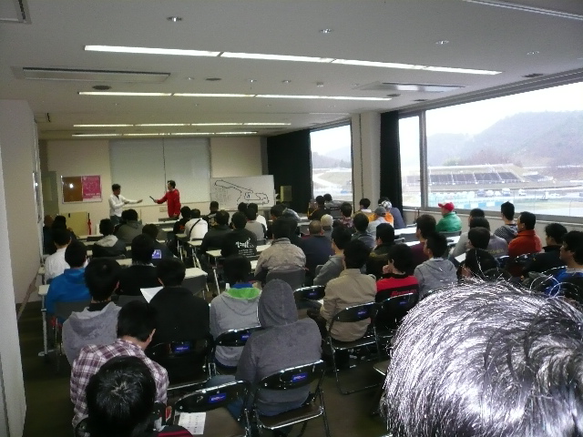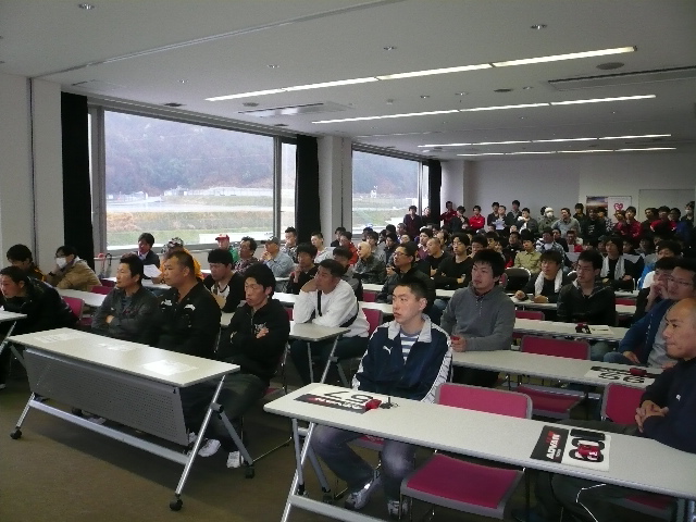 | FUN☆RUN 2014シリーズ戦 開幕! 第1戦 岡山国際サーキット 当日は、生憎の雨模様でしたが113台のエントリー! 開幕戦は参加台数が過去最高の大盛況ぶり! 走行枠の増枠にて何とか対応する事にしましたが、参加して頂いたエントラントの皆様には多々ご迷惑をかけたかと思います。 参加者皆さまに協力を頂きましてスムーズに進めることができました。 このFUN☆RUN走行会はショップ合同で年間4戦のシリーズ戦として行っています。 ブリーフィング(ドライバーズミーティング)などもシッカリと行っています。 皆さん、真剣に聞いてくれています。 | |