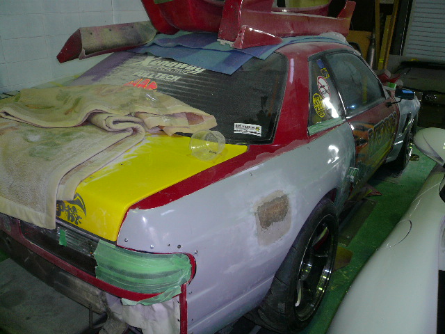 | けしてクラッシュした訳じゃありません! 置き古しにしただけです。 今年は、少し頑張る気になってみたのです? で、こんな事をはじめたのでチョットだけお見せします。 元々、ORIGIN Labo フルエアロにもう1台分のエアロを 追加、駆使して超〜ワイドボディになるか?どうか? | |
