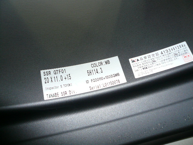 | SSR GTF01 20インチ/11J/+15 セミグロスガンメタと フラットブラックの2色入荷! ¥107.000- SSR最強スペックの5スポーク「GT F01」 レーシングモデル直系の軽さと強さ。 ハードなチューニングカーにも余裕もって対応するNewホイール! 早速、入換作業をやろう! | |