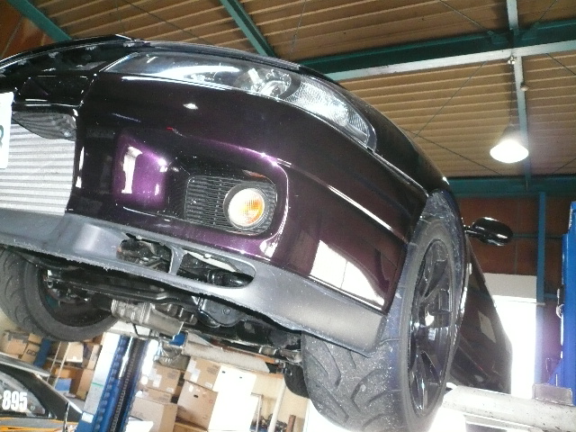 | R33GT-R 他店にて購入後 初のサーキット走行にて エンジンブロー 10000回転以上回ったらしい? 嘘でしょ〜? 作業開始します。 下から覗くと! 見えます? ブロックに穴! ほら、穴が! | |